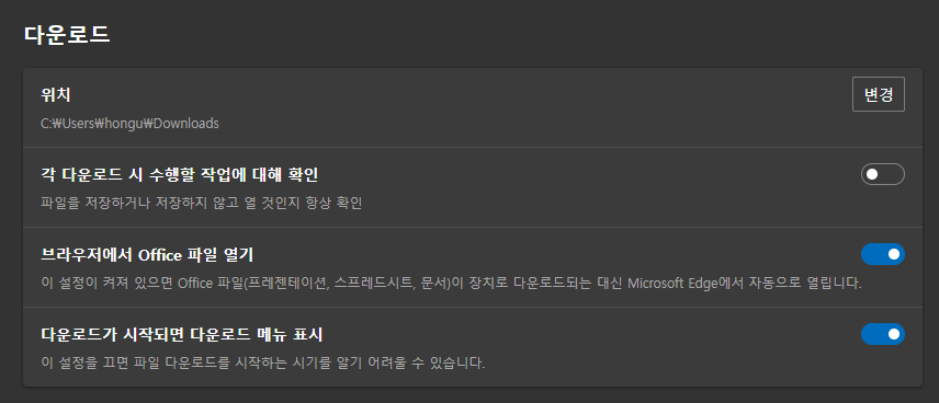 이상 크롬, 웨일, 엣지의 다운로드 경로변경에 대해 알아봤습니다.